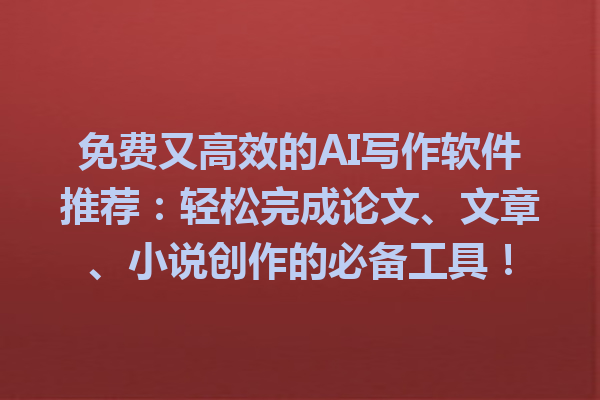 内容创作的需求日益增加。无论是学术论文、商业报告,还是个人博客,写作的任务往往繁重且耗时。凭借人工智能的迅速发展,许多 AI 写作软件应运而生,让我们在写作上获得更高效的体验。本文将推荐几款免费又高效的 AI 写作软件,帮助您轻松完成各种写作任务。