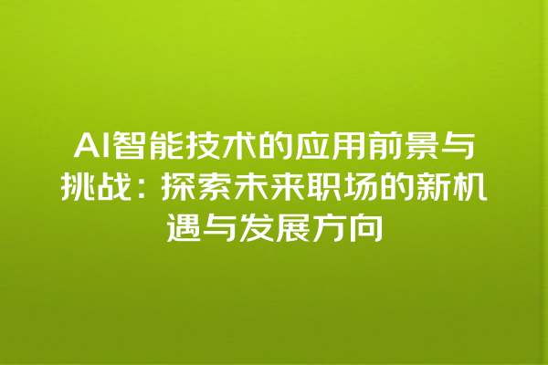 随着人工智能(AI)技术的迅速发展,AI 智能技术已经逐渐渗透到各个行业,成为推动社会进步的重要力量。本篇文章将探讨 AI 技术的应用前景以及在推广过程中所面临的挑战,旨在为读者提供全景式的视角。