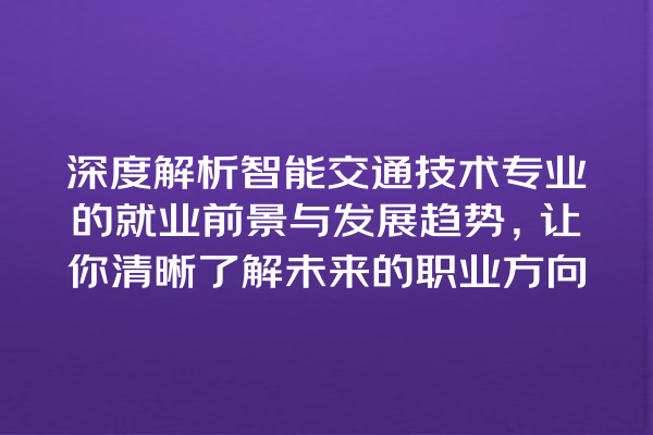 智能交通技术专业正处于蓬勃发展的阶段,拥有良好的就业前景和发展空间。通过学术与实践的结合,学生们可以在的职业道路上走得更远。