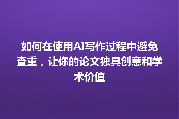 越来越多的学生和研究人员开始使用 AI 工具来帮助写作。尤其是在写论文时,AI 不仅能够提高效率,也能为内容提供新思路。很多人担心使用这些工具可能会导致论文的查重率过高,从而影响学术诚信。我们将探讨一些实用的策略,以确保你在使用 AI 助力写作时,能够减少查重风险,并提高论文的创意和学术价值。