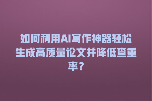 AI 写作神器为现代学术写作提供了便捷的解决方案。通过合理选择、使用和修改这些工具,研究者们可以在提升论文质量和降低查重率方面取得显著成效。,掌握 AI 写作工具的使用技巧,将为你的学术之路加分不少。