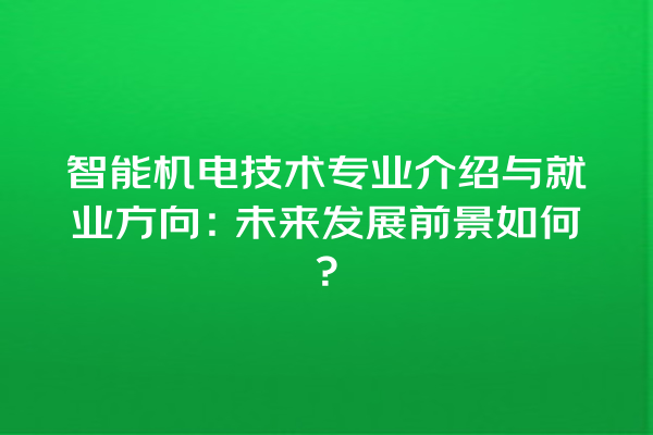 来看,智能机电技术专业不仅涵盖了传统机电领域的知识,还融入了现代信息技术与智能化应用。随着社会对智能化设备的需求日益增加,该专业的就业前景非常乐观。,智能机电技术将进一步推动各行业的转型升级,为毕业生提供丰富的职业发展机会。
