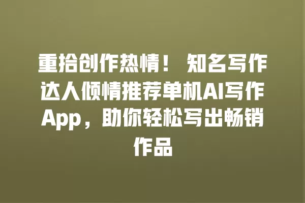 单机 AI 写作 App 的这些优点使得它在写作界越来越受到欢迎。无论是新手还是老手,都能从中获益,轻松应对各种写作挑战。