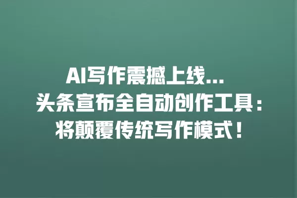 文章将深入探讨这款 AI 写作 工具的功能与应用场景,以及它如何帮助个人、企业和媒体在信息爆炸的时代中快速获得优质内容。还将分析这项技术在 可能带来的挑战与机遇,特别是在创作原创性和保持人文关怀方面的讨论。随着 AI 写作 的崛起,内容创作者需要适应新的竞争环境,发挥独特的创造力和思维能力,以更好地与智能 写作工具 协同工作。头条的全 自动创作 工具不仅是技术的突破,更是一次对写作行业全新格局的塑造,值得我们深入思考和关注。
