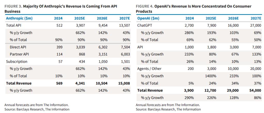 根据巴克莱的分析,Anthropic在API业务上已经相较OpenAI拥有显著的优势。