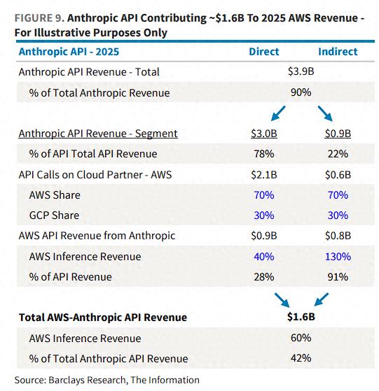 需要注意的是,巴克莱的分析基于这样的假设:Anthropic有70%的收入依托于AWS,其余30%则来自谷歌云平台(GCP)。
