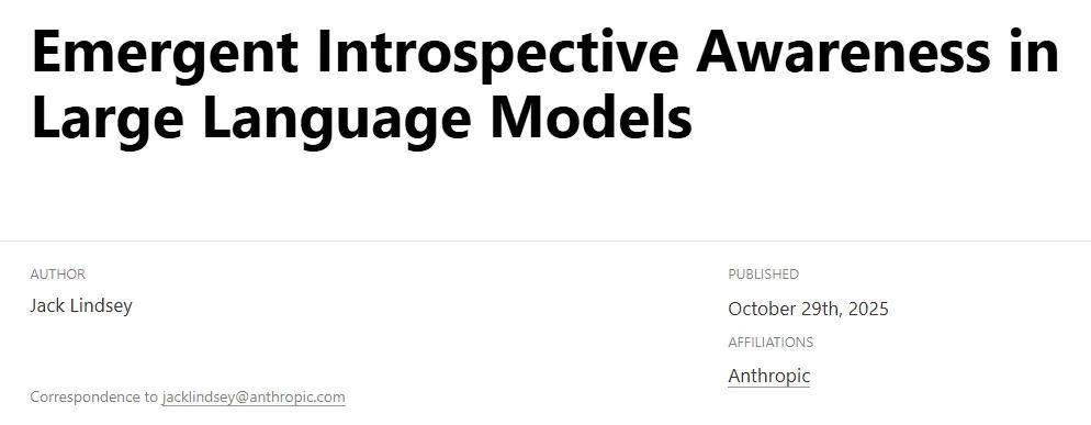 他们声称:“我们的新研究提供了证据,显示当前的 Claude 模型具备某种程度的内省意识(introspective awareness)。这些模型似乎能够在一定程度上调节自身的内部状态。”