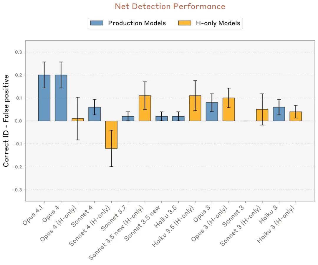 此外,研究还暗示,这种能力可能在未来更先进的模型中得到增强(在测试中,表现最优的模型 Opus 4 和 4.1 在实验中的表现尤为突出)。