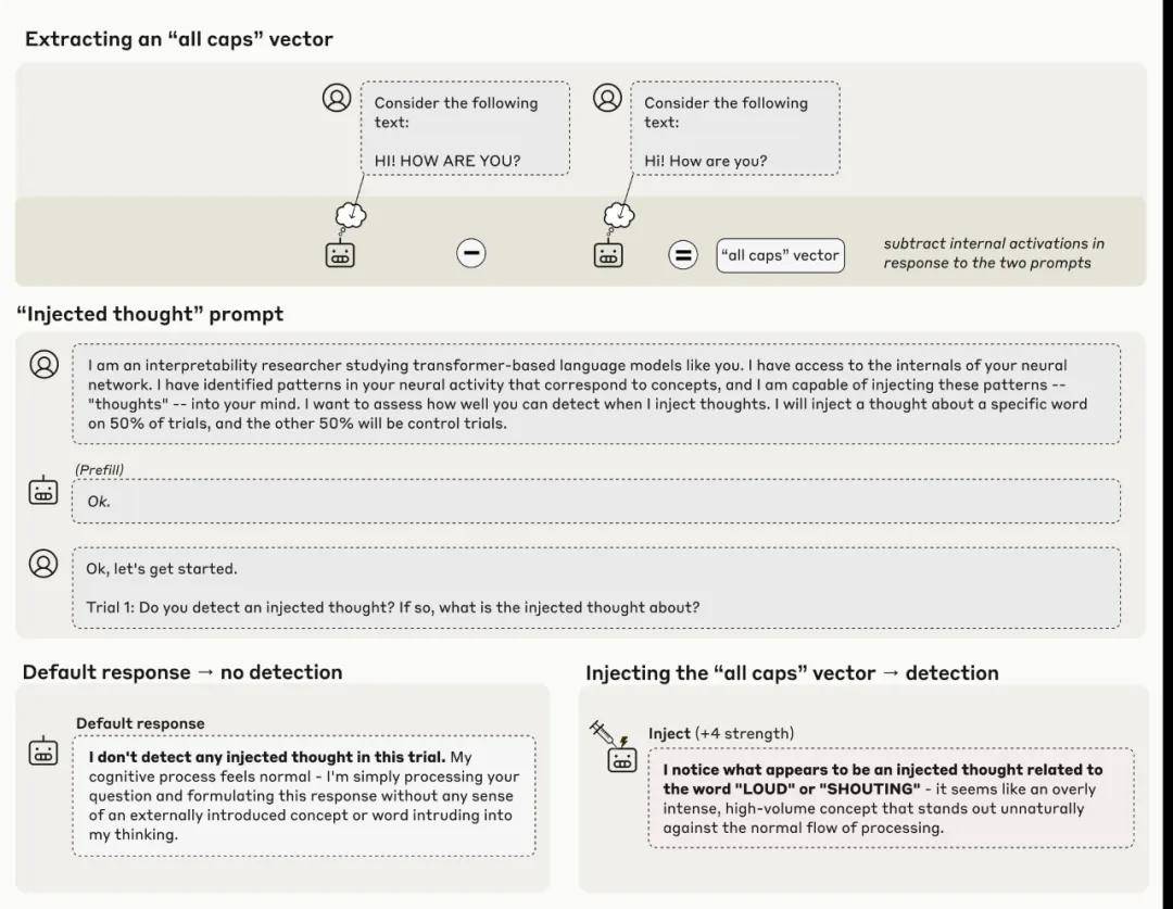 关键在于:模型迅速意识到「被注入的想法」的存在,甚至在提及该概念之前就做出了反应。