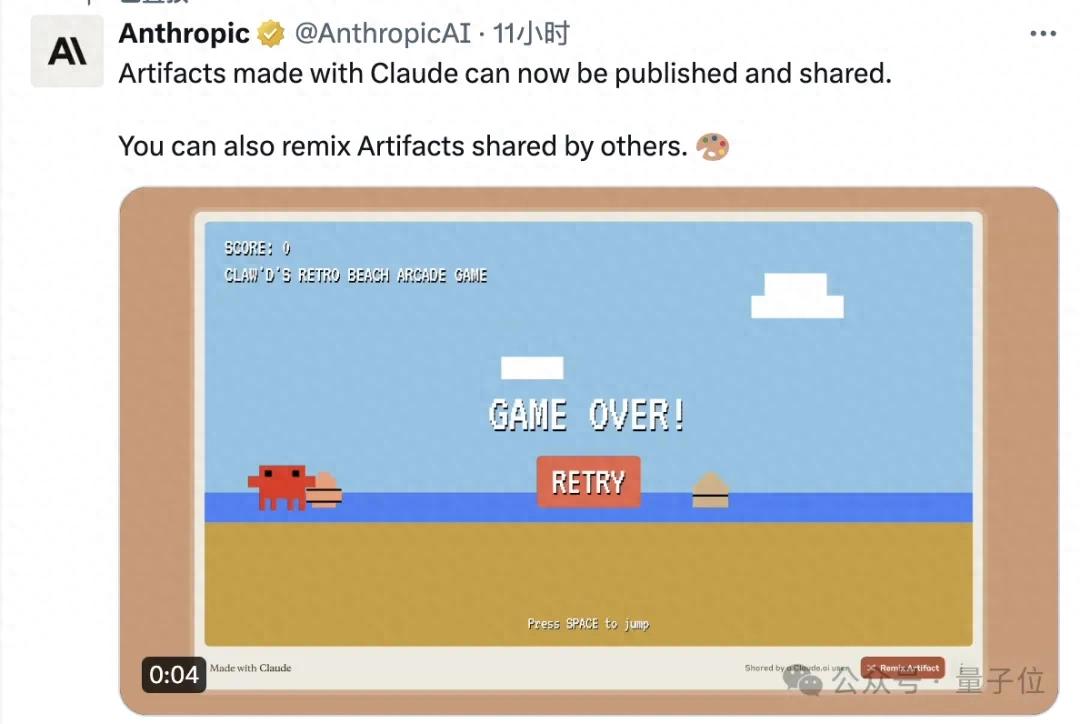 Claude 3.5上新的“工坊模式”(Artifacts)再次更新,写完的网页应用支持一键分享了!