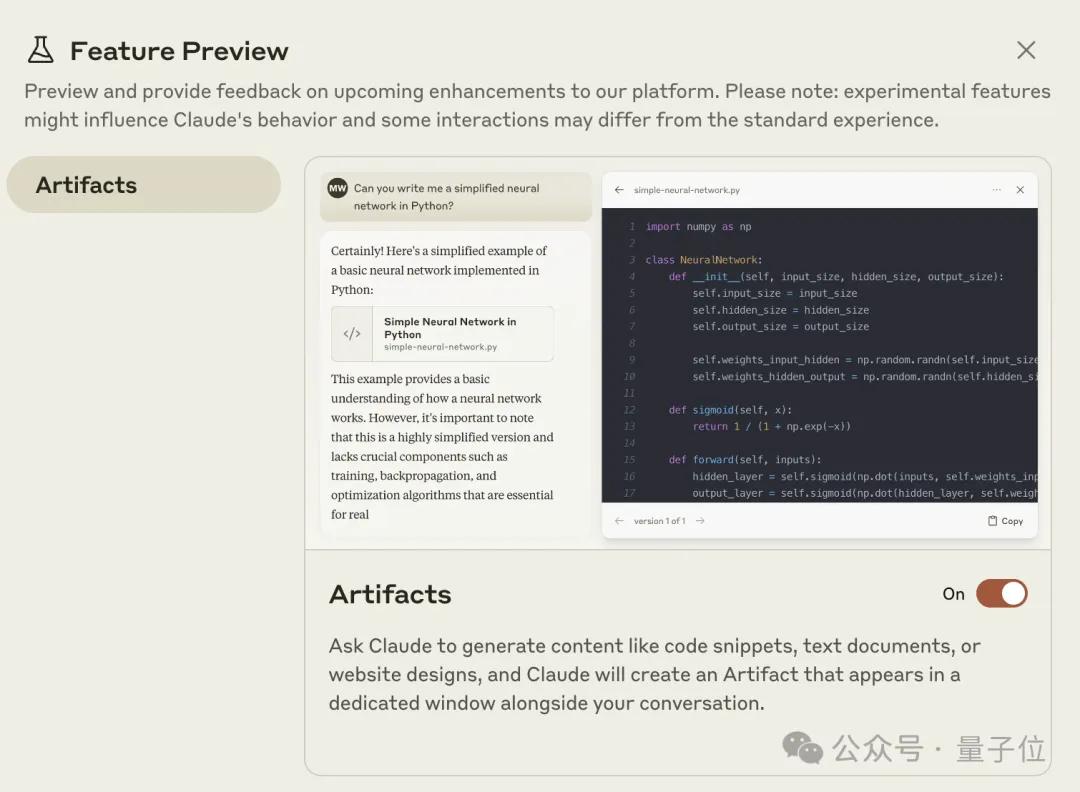 开启之后,只要对Claude提出的需求涉及了相关内容,界面就会自动变成分栏模式(其实是浮窗,但由于整个页面比较大所以看着像分栏)。
