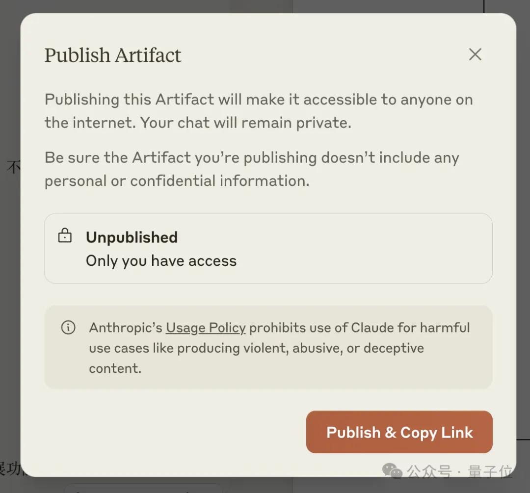 点击之后会弹出对话框进行二次确认,然后再点下Publish & Copy Link就能获得分享链接了。