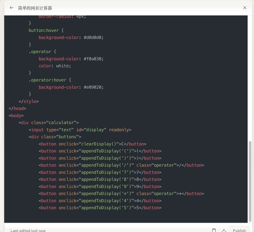 这时要求Claude进行修复,它就会一边在左边输出文字解释,一边在右边生成新代码,然后仍然是自动跳转预览,可以看到这次bug已经修复成功了。