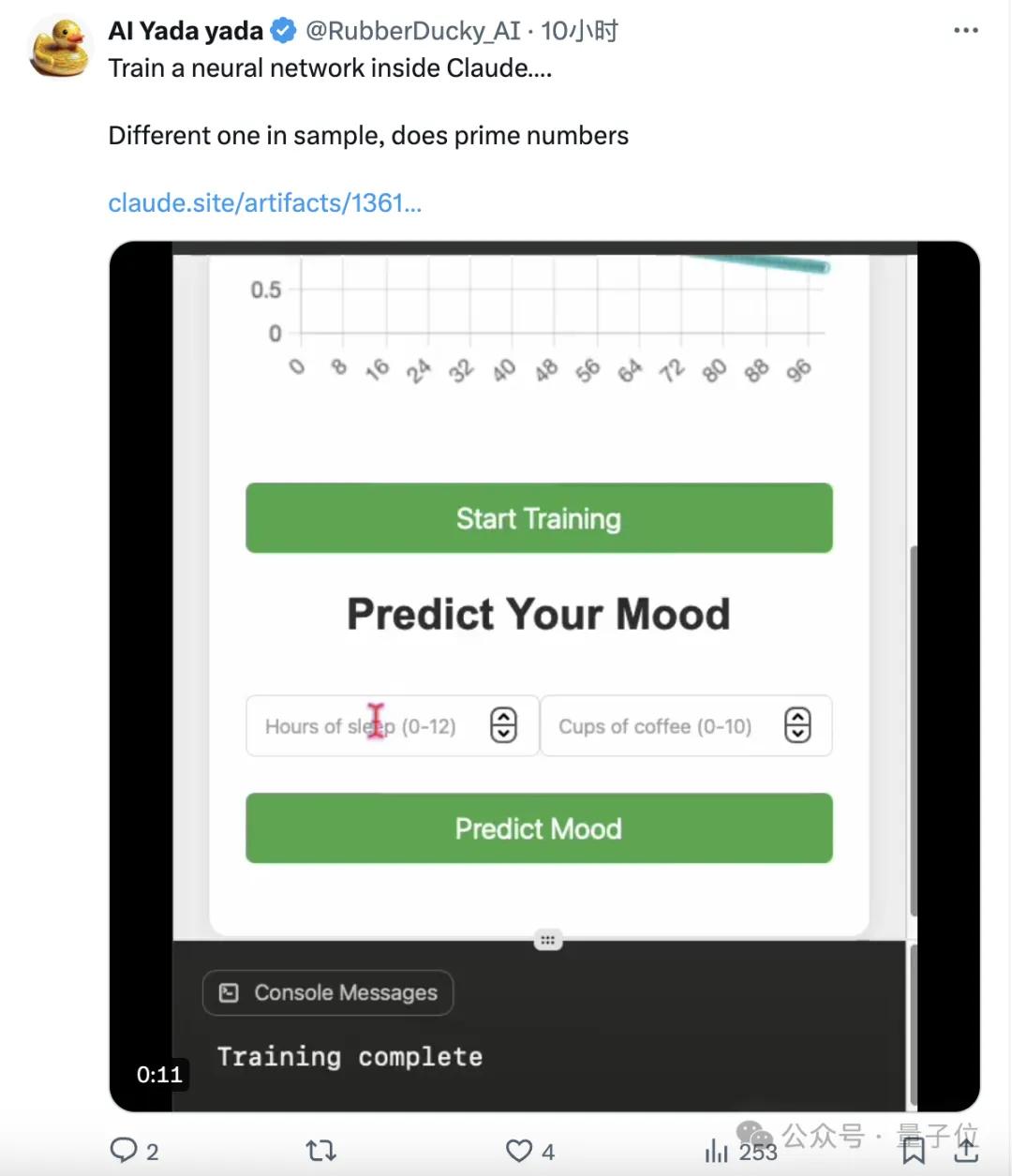 当然在Alex的评论区,也有不少网友已经晒出了自己的作品,甚至有大神直接在Claude里训练起了神经网络,并把程序也公开了。