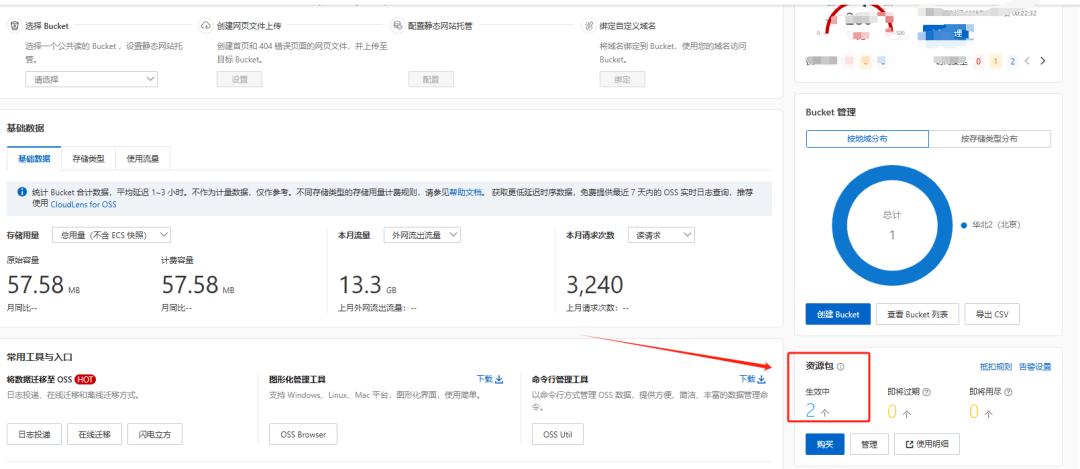 当然,这中间的一个坑是,阿里云的OSS既需要存储包,还需要流量包,前者消耗的是你的存储资源,一般不需要太大,后者则是用户访问时的流量消耗。
