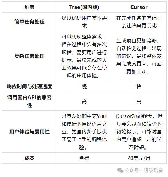 总体上Trae在复杂任务处理上稍逊于Cursor,但其本土化体验、安全性和用户体验方面,更适合国内用户。