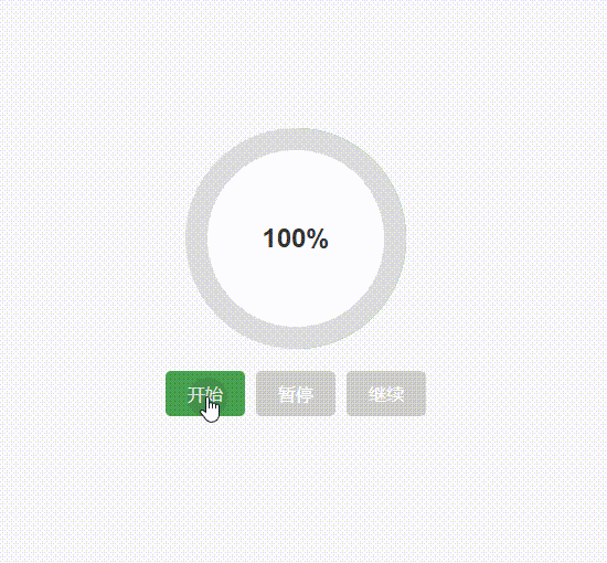 “创建一个带动画的环形进度条,点击按钮后从0%到100%平滑加载,完成后弹出”Done!”提示,要求支持暂停/继续功能。”