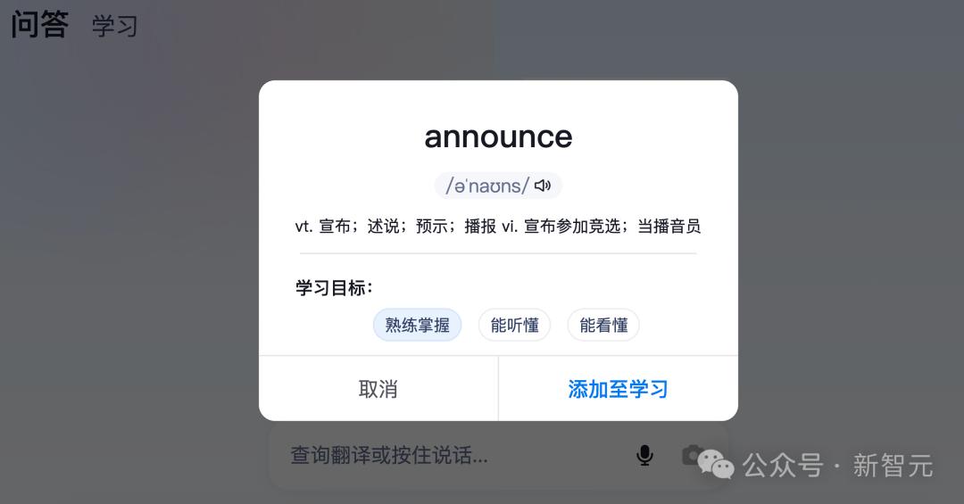 单词卡中设定了学习目标,通过「添加」按钮即可添加到学习选项卡页面。